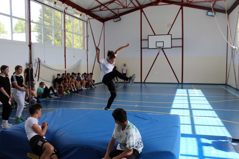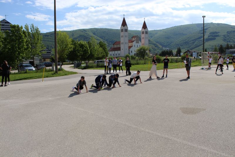Obilježavanja Dana škole započela su sportska natjecanja na školskom igralištu. Učenici su sudjelovali u raznim sportskim disciplinama: trčanju, nogometu, odbojci, košarci, potezanju užeta... Uz navijanje prijatelja i učitelja, sportski duh bio je prisutan na svakom koraku.